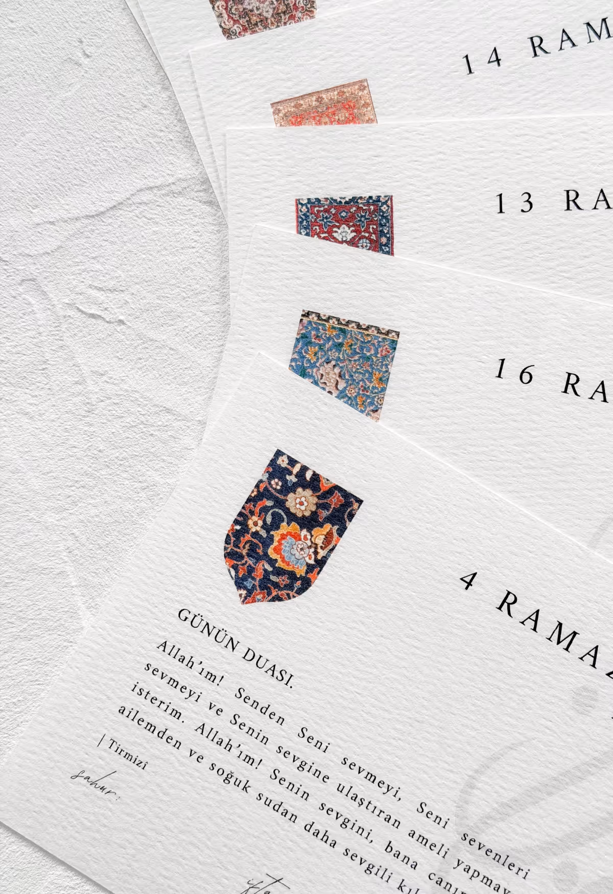 Unser Ramadan Kalender 2026 begleitet dich mit 30 kunstvoll gestalteten Karten, gedruckt auf hochwertigem Papier.